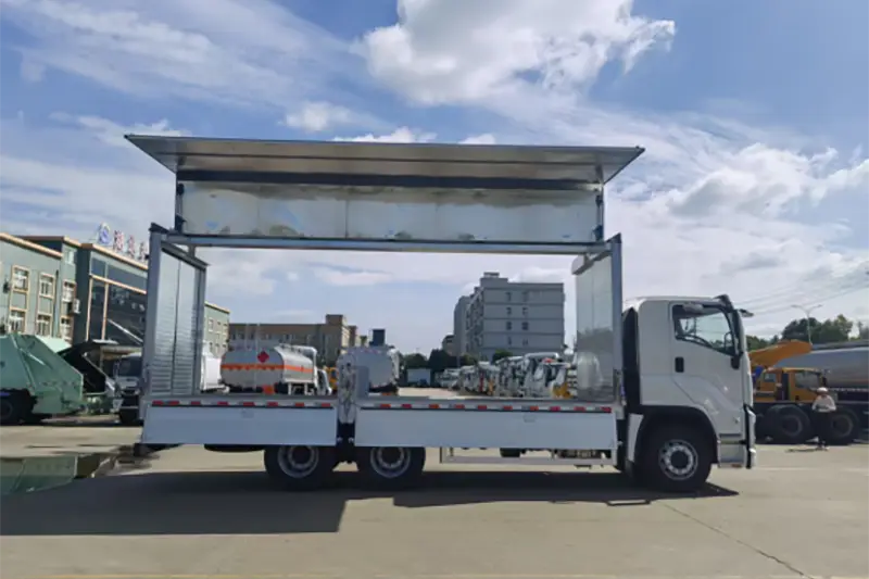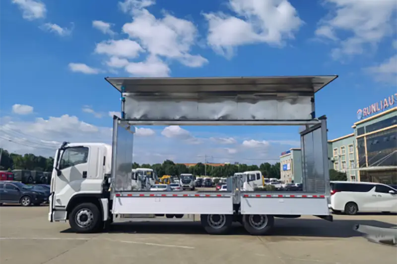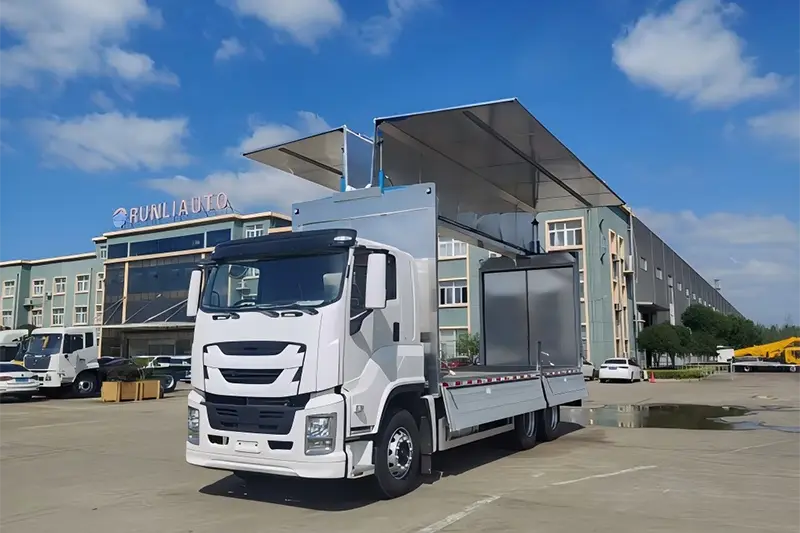 Il camion Runli con apertura alare in lega di alluminio, ampiamente noto anche come furgone con apertura ad ala o furgone con apertura laterale, è un camion speciale ad alte prestazioni modificato dal telaio Isuzu 6X4 originale, aggiornato per risolvere il punto critico di bassa efficienza di carico-scarico per carichi grandi, pesanti e di grandi dimensioni. A differenza dei tradizionali furgoni con apertura solo posteriore, i pannelli laterali del cassone di carico e la metà del tetto si aprono idraulicamente come ali, creando una spaziosa area di carico tridimensionale che supporta la movimentazione multidirezionale laterale, anteriore e posteriore. Si tratta di uno strumento di trasporto logistico fondamentale, ampiamente utilizzato nella distribuzione globale di carichi sfusi, nella consegna di attrezzature industriali e nella spedizione di prodotti agricoli, in grado di bilanciare perfettamente la protezione del carico e l'efficienza di gestione per gli acquirenti all'ingrosso internazionali e le imprese logistiche dedicate.