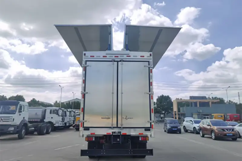 Efficienza di movimentazione ultraelevata: sistema di apertura idraulico con una sola chiave, i pannelli alari si aprono e si chiudono entro 1 minuto, formando un ampio canale operativo, consentendo ai carrelli elevatori di lavorare da più lati contemporaneamente, riducendo i tempi di carico-scarico del 60% rispetto ai tradizionali camion box, particolarmente adatti per trasferimenti frequenti di merci e merci di grandi dimensioni.